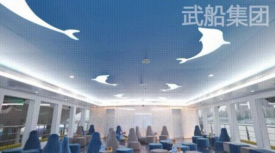 通过动态的灯光、音响、场景与静态平面装饰的结合,将现代化、高科技的情景交互设计和声光电技术融入到船舶内装设计,打造全方位的舱室内装效果。